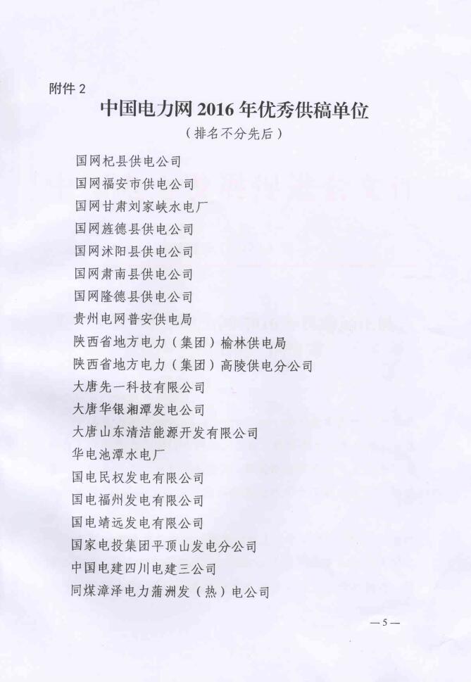 關(guān)于表彰“中國(guó)電力網(wǎng)2016年優(yōu)秀通訊員、優(yōu)秀供稿單位”的決定