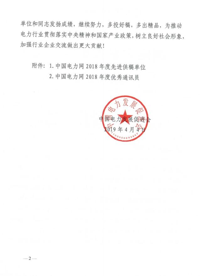關(guān)于表彰“中國(guó)電力網(wǎng)2018年先進(jìn)供稿單位、優(yōu)秀通訊員”的通知