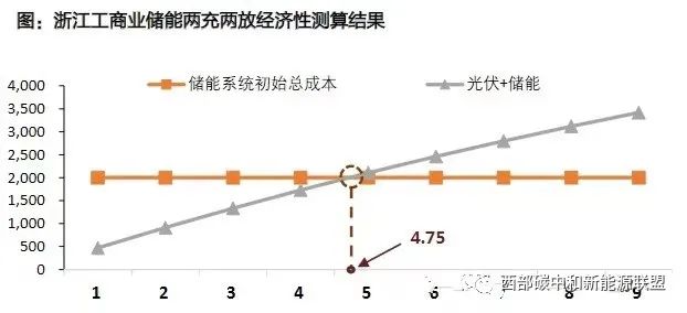 (3)每年凈現(xiàn)金流=(每年可節(jié)省的價(jià)差電費(fèi)-年運(yùn)維費(fèi)用-年逆變器替換費(fèi)用)×折現(xiàn)因子浙江?。簝纱纬潆娋诠葧r(shí),兩次放電分別在尖峰段及高峰段,平均峰谷價(jià)差為0.85元/kWh,測(cè)得投資回收期約為4.75年。據(jù)測(cè)算,浙江、廣東、海南三省儲(chǔ)能投資回收周期均在6年以內(nèi)。在可實(shí)現(xiàn)兩充兩放的省市,疊加全國(guó)范圍內(nèi)峰谷價(jià)差持續(xù)拉大,工商業(yè)儲(chǔ)能經(jīng)濟(jì)性相當(dāng)可觀。依據(jù)測(cè)算結(jié)果(本文僅對(duì)浙江省進(jìn)行了測(cè)算,其他省份就不一一贅述,可自行測(cè)算),浙江省4.75年,廣東省5.70年,海南省5.98年。