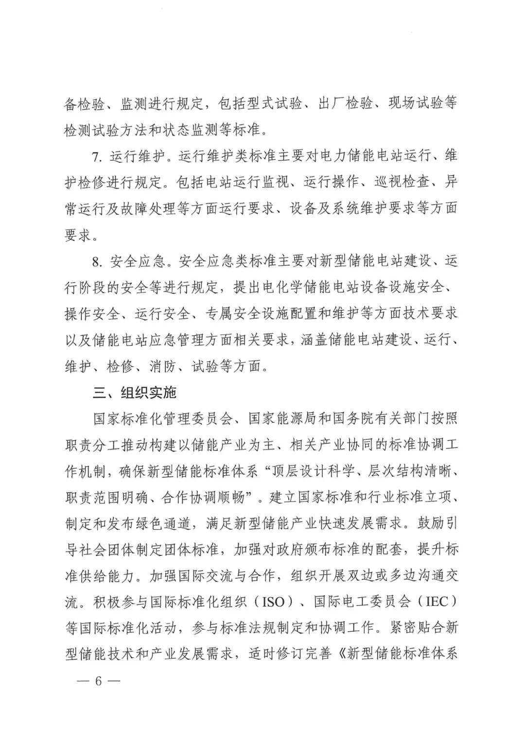 到2025年,在電化學(xué)儲(chǔ)能、壓縮空氣儲(chǔ)能、可逆燃料電池儲(chǔ)能、超級(jí)電容儲(chǔ)能、飛輪儲(chǔ)能、超導(dǎo)儲(chǔ)能等領(lǐng)域形成較為完善的系列標(biāo)準(zhǔn);加強(qiáng)與國內(nèi)外標(biāo)準(zhǔn)化組織技術(shù)交流,著力打破產(chǎn)業(yè)發(fā)展瓶頸,規(guī)范引導(dǎo)產(chǎn)業(yè)高質(zhì)量發(fā)展,保障儲(chǔ)能電站安全;加大國際標(biāo)準(zhǔn)化力度, 深度參與國際電工委員會(huì)(IEC) 國際標(biāo)準(zhǔn)化工作,支撐標(biāo)準(zhǔn)走出去。逐步構(gòu)建適應(yīng)技術(shù)創(chuàng)新趨勢(shì)、滿足產(chǎn)業(yè)發(fā)展需求、對(duì)標(biāo)國際先進(jìn)水平的新型儲(chǔ)能標(biāo)準(zhǔn)體系。