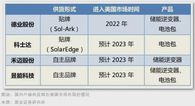 寧德時代為 Tesla、Fluence 主要供應商之一,受益較高;科士達為 SolarEdge 主要電池代工供應商;德業(yè)股份綁定美國經銷商 Sol-Ark;禾邁股份、昱能科技(微逆)、科陸電子(電池、PCS)等均在美國有出貨。