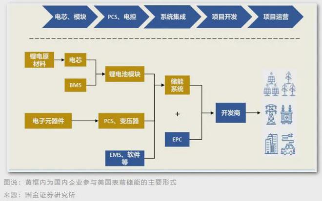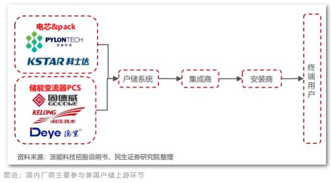 從表后和工商業(yè)儲能來看,國內企業(yè)大部分以代工和海外品牌合作的模式進入海外市場,也是參與產業(yè)鏈上游的關鍵環(huán)節(jié)——電芯、PACK和逆變器。