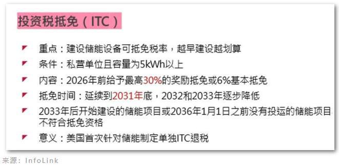 對于儲能來說,這是美國首次針對獨立儲能進行投資稅抵免(Investment Tax Credit, ITC)。