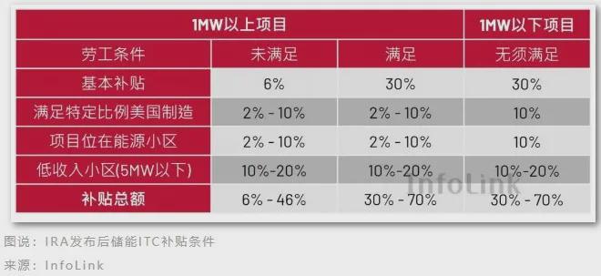 在該法案中,除基本補貼外,還將表前與工商用儲能項目以1MW作為分界,在1MW以上項目,若滿足特定比例于美國制造,或是項目建設地點位于法定之能源小區(qū),則可再獲得最高10%之額外補貼。