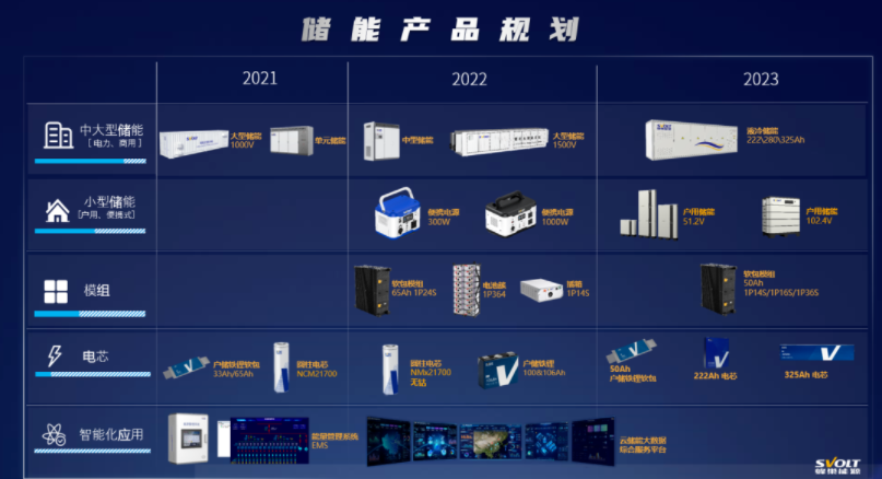 在產(chǎn)品上,目前產(chǎn)品包含全序列中大型儲能(電力和商用側(cè))、小型儲能(戶用、便攜式儲能)、模組、各類規(guī)格儲能電芯以及智能化應(yīng)用系統(tǒng)和平臺,滿足客戶在發(fā)電側(cè)、電網(wǎng)側(cè)、用戶側(cè)的儲能及能源管理需求。