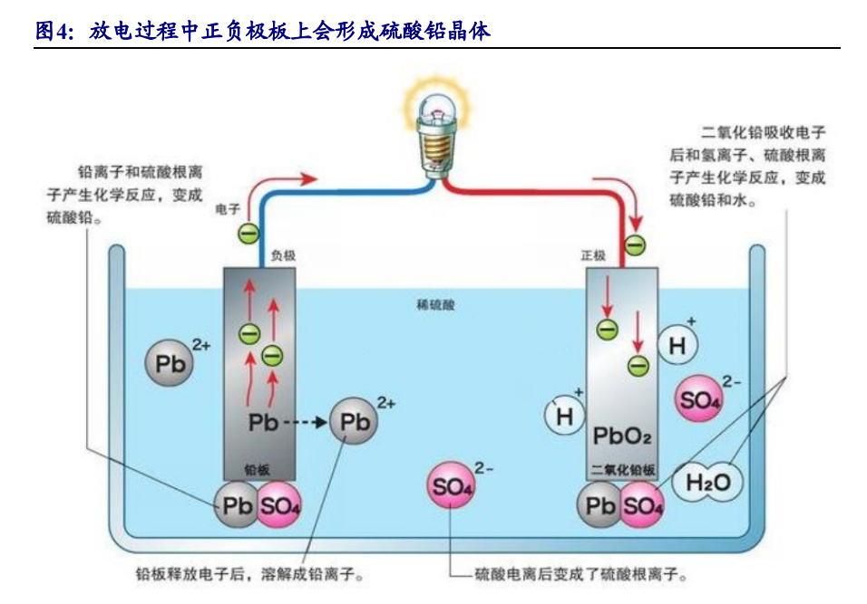 鉛酸電池包含正極板組、負(fù)極板組、隔板、電解液、容器等結(jié)構(gòu)組成。正極板 活性物質(zhì)為二氧化鉛,負(fù)極板主要活性物質(zhì)為鉛。放電過程中正負(fù)極板上會(huì)形成細(xì) 小松軟的硫酸鉛晶體,充電過程中硫酸鉛歧化為鉛與二氧化鉛。