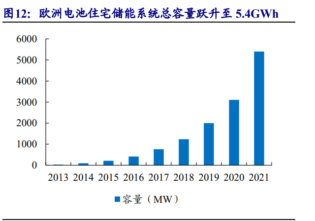 歐洲光伏產(chǎn)業(yè)協(xié)會(huì)(SolarPower Europe)數(shù)據(jù)表明,歐洲部署的住宅儲(chǔ)能系統(tǒng)總儲(chǔ)能容量在 2020 年首次突破 1GWh,而在 2021 年又增長了一倍多,達(dá)到 2.3GWh。 2021 年住宅電池儲(chǔ)能市場(chǎng)的規(guī)模是 2014 年的 35 倍。歐盟各國在 2014 年僅安裝了約 9000 套住宅電池儲(chǔ)能系統(tǒng),而到 2021 年,約部署了 26 萬套住宅電池儲(chǔ)能系統(tǒng)。歐 洲光伏產(chǎn)業(yè)協(xié)會(huì)在其“中等情景”預(yù)計(jì) 2022 年將達(dá)到 3.9GWh,將增長 71%,這將 使歐洲累計(jì)部署的住宅儲(chǔ)能系統(tǒng)總儲(chǔ)能容量達(dá)到 9.3GWh。根據(jù)該協(xié)會(huì)的預(yù)計(jì),歐洲 在 2022 年將安裝 42 萬多塊蓄電池,這將使歐洲 100 多萬戶家庭使用住宅太陽能發(fā) 電設(shè)施和住宅電池儲(chǔ)能系統(tǒng)。歐洲電池儲(chǔ)能系統(tǒng)的電池通常是進(jìn)口的,現(xiàn)在面臨著 嚴(yán)重短缺的困境。 歐洲光伏產(chǎn)業(yè)協(xié)會(huì)認(rèn)為,住宅太陽能和儲(chǔ)能系統(tǒng)的部署熱潮將會(huì)持續(xù)下去。根 據(jù)該協(xié)會(huì)對(duì)“中等情景”的預(yù)計(jì),到 2026 年底,歐洲將有 390 萬戶家庭部署住宅電 池儲(chǔ)能系統(tǒng),累計(jì)部署的儲(chǔ)能容量將增長 300%以上,達(dá)到 32.2GWh。而其“高等情 景”預(yù)測(cè)超過 44GWh。德國是在歐洲領(lǐng)先的住宅電池儲(chǔ)能市場(chǎng) (2021 年占?xì)W洲住宅 電池儲(chǔ)能市場(chǎng)份額的 59%),新建的住宅太陽能設(shè)施的電池儲(chǔ)能系統(tǒng)配套部署率達(dá)到 70%,并且還在進(jìn)一步上升。