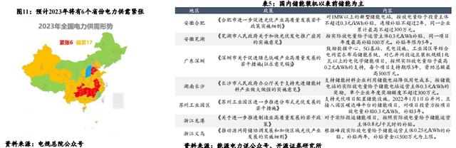 2023年國(guó)內(nèi)電力供需關(guān)系預(yù)計(jì)仍將緊張。在全國(guó)經(jīng)濟(jì)平穩(wěn)復(fù)蘇的大背景下,全社會(huì)用電量有望持續(xù)增長(zhǎng),國(guó)內(nèi)電力供需關(guān)系預(yù)計(jì)將呈現(xiàn) 相對(duì)緊張的狀態(tài)。在迎冬度夏的用電高峰期,國(guó)內(nèi)部分地區(qū)缺電問(wèn)題預(yù)計(jì)會(huì)地方企業(yè)的生產(chǎn)生活造成不利影響。根據(jù)電規(guī)總院預(yù)測(cè), 2023年全國(guó)將有6個(gè)省份電力供需形勢(shì)緊張,17個(gè)省份電力供需偏緊。