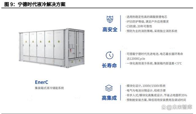 各大主流集成廠商近年來均推出了液冷產(chǎn)品,在能量密度、電池壽命上較風(fēng) 冷產(chǎn)品有了顯著提升。陽光電源的 PowerTitan 產(chǎn)品采用液冷溫控的方式,實(shí) 現(xiàn)了所有電芯溫差小于 2.5℃,使電池壽命延長(zhǎng) 2 年以上。海博思創(chuàng)的HyperA2-C3354、HyperA2-C6709 產(chǎn)品采用了同程均衡液冷管路設(shè)計(jì),實(shí)現(xiàn)了 溫差不超過 3℃,電池壽命延長(zhǎng) 20%。比亞迪的 Cube T28 產(chǎn)品采用了液冷技術(shù), 空間利用率遠(yuǎn)遠(yuǎn)高于傳統(tǒng)預(yù)留風(fēng)道的風(fēng)冷系統(tǒng)。寧德時(shí)代的 EnerC 產(chǎn)品,能量 密度較傳統(tǒng)風(fēng)冷系統(tǒng)提高了近兩倍,可將單簇 416 個(gè)電芯溫差控制在 3°C 以內(nèi), 全系統(tǒng) 4160 個(gè)電芯溫差控制在 5°C 以內(nèi)。