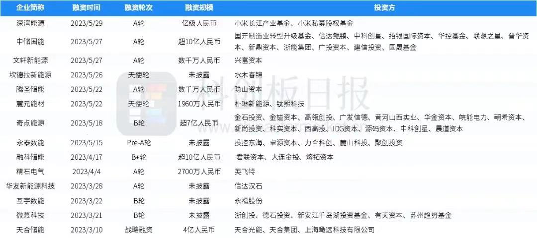 儲能領域一級市場融資火熱