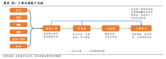 根據(jù)工商業(yè)儲能運(yùn)營模式的不同,可以分為自建和合同能源管理模式。據(jù)東方財(cái)富證券:
