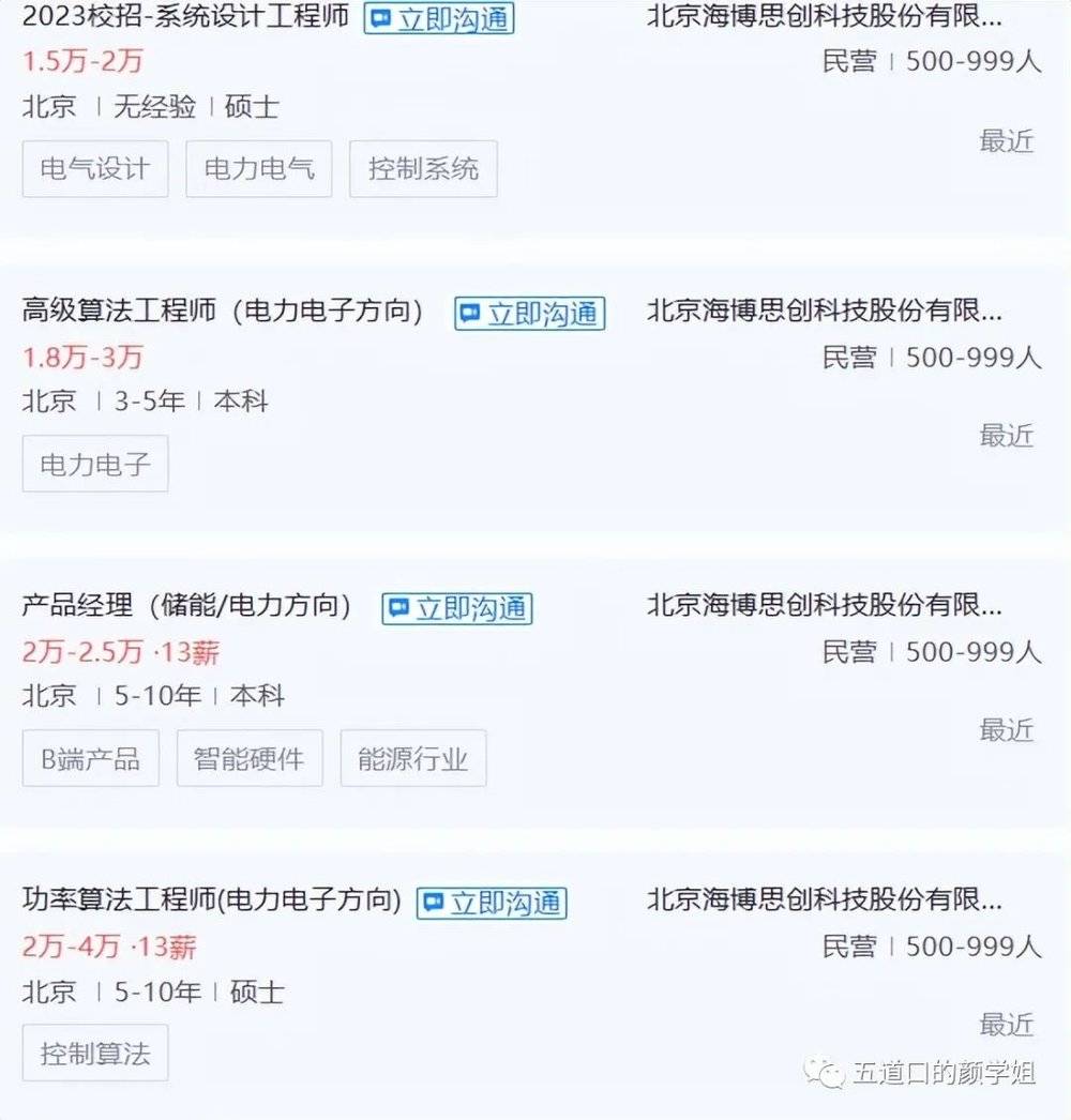 如果要直觀地了解,直接看看相關企業(yè)招什么樣的人就更清楚。例如海博思創(chuàng),它招聘的大都是電子信息、電氣工程類專業(yè)的人才。