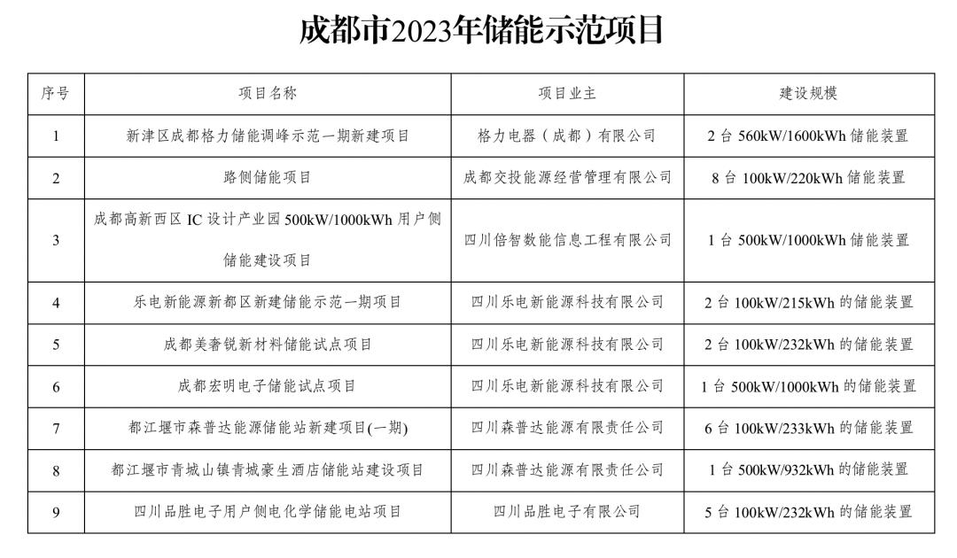 最高100萬(wàn)!成都市2023年儲(chǔ)能示范項(xiàng)目開(kāi)始公示