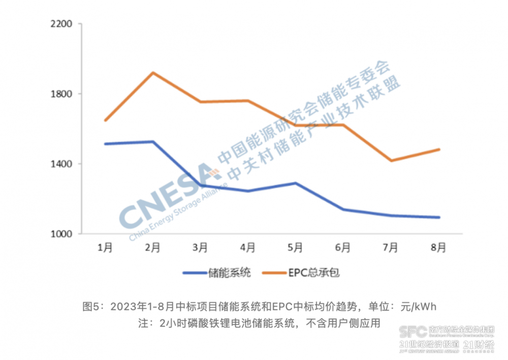 根據(jù)中關(guān)村儲(chǔ)能產(chǎn)業(yè)技術(shù)聯(lián)盟(CNESA) DataLink全球儲(chǔ)能數(shù)據(jù)庫(kù)的統(tǒng)計(jì),今年以來(lái),儲(chǔ)能系統(tǒng)中標(biāo)價(jià)格的持續(xù)下滑:今年1月,儲(chǔ)能系統(tǒng)價(jià)格從1.5元/附近,到今年8月份,其價(jià)格已接近1元/Wh。