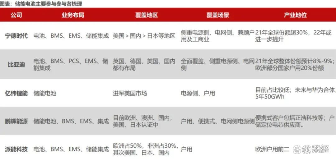 梳理儲能電池:主要為動力電池廠參與