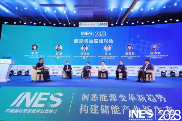 儲(chǔ)能領(lǐng)袖高峰對(duì)話環(huán)節(jié)由中國(guó)電力科學(xué)研究院有限公司首席技術(shù)專家、中國(guó)電池工業(yè)協(xié)會(huì)儲(chǔ)能分會(huì)專家委員會(huì)主任委員惠東主持,北京天啟鴻源新能源科技有限公司董事長(zhǎng)王野、廣州鵬輝能源科技股份有限公司國(guó)內(nèi)儲(chǔ)能副總裁陳洪新、河南創(chuàng)力新能源科技股份有限公司董事長(zhǎng)楊玉鋒、湖南科力遠(yuǎn)新能源股份有限公司儲(chǔ)能事業(yè)部總經(jīng)理陳杰、湖南贏科儲(chǔ)能科技有限公司總經(jīng)理王俊安,分別圍繞主流技術(shù)特征、應(yīng)用場(chǎng)景和商業(yè)模式等角度闡述獨(dú)到見解。