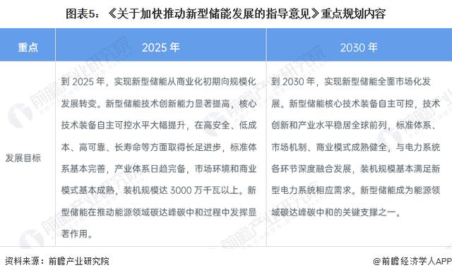 國家發(fā)展改革委、國家能源局聯(lián)合印發(fā)了《關(guān)于加快推動新型儲能發(fā)展的指導(dǎo)意見》,提出到2025年,實(shí)現(xiàn)新型儲能從商業(yè)化初期向規(guī)?;l(fā)展轉(zhuǎn)變。新型儲能技術(shù)創(chuàng)新能力顯著提高,核心技術(shù)裝備自主可控水平大幅提升,在高安全、低成本、高可靠、長壽命等方面取得長足進(jìn)步,標(biāo)準(zhǔn)體系基本完善,產(chǎn)業(yè)體系日趨完備,市場環(huán)境和商業(yè)模式基本成熟,裝機(jī)規(guī)模達(dá)3000萬千瓦以上。到2030年,實(shí)現(xiàn)新型儲能全面市場化發(fā)展。新型儲能核心技術(shù)裝備自主可控,技術(shù)創(chuàng)新和產(chǎn)業(yè)水平穩(wěn)居全球前列,標(biāo)準(zhǔn)體系、市場機(jī)制、商業(yè)模式成熟健全,與電力系統(tǒng)各環(huán)節(jié)深度融合發(fā)展,裝機(jī)規(guī)?;緷M足新型電力系統(tǒng)相應(yīng)需求。新型儲能在推動能源領(lǐng)域碳達(dá)峰、碳中和過程中發(fā)揮顯著作用。新型儲能成為能源領(lǐng)域碳達(dá)峰、碳中和的關(guān)鍵支撐之一。