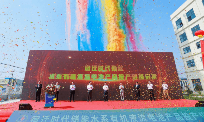 圖說:水系有機液流電池投產(chǎn)啟幕 來源:宿遷時代儲能