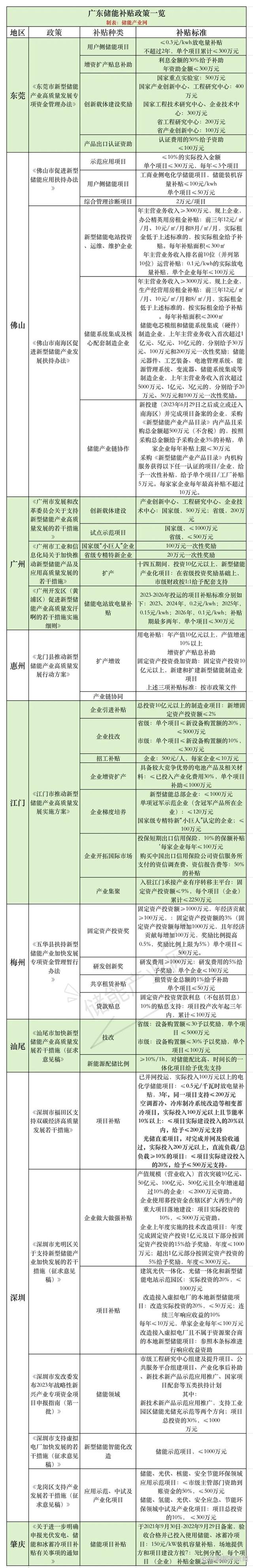 廣東儲能補貼一覽:近10地發(fā)布儲能補貼,儲能電站及企業(yè)均獲支持