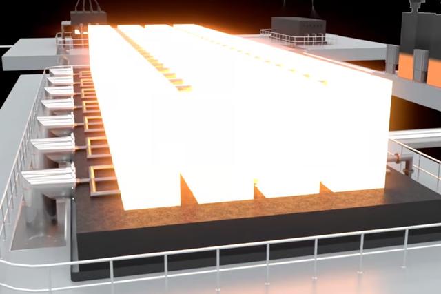 當(dāng)能量被收集時(shí),液態(tài)錫從大約2400°C下降到1900°C(4350°F到3450°F),當(dāng)能量可用時(shí),它被送回加熱元件“充電”。