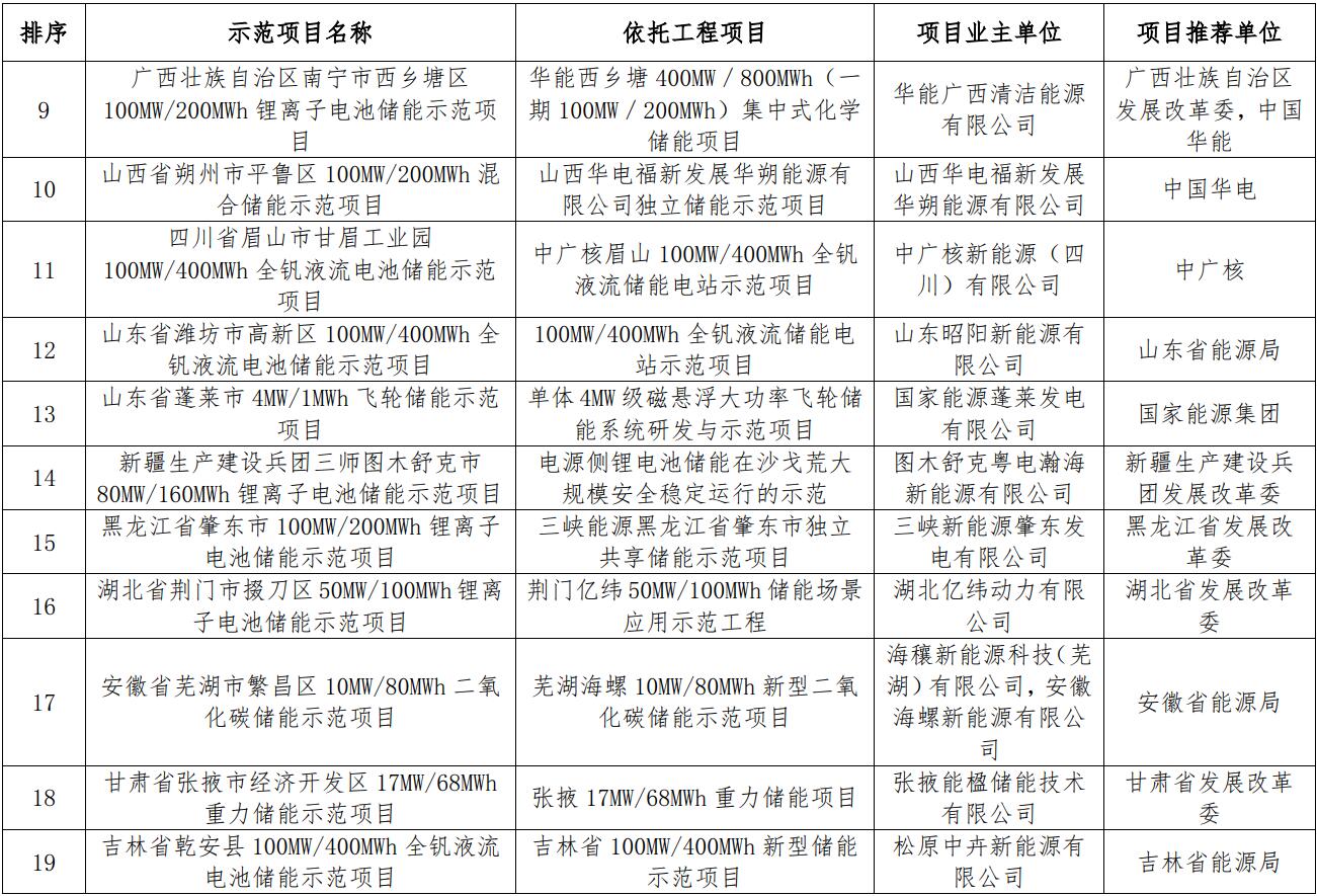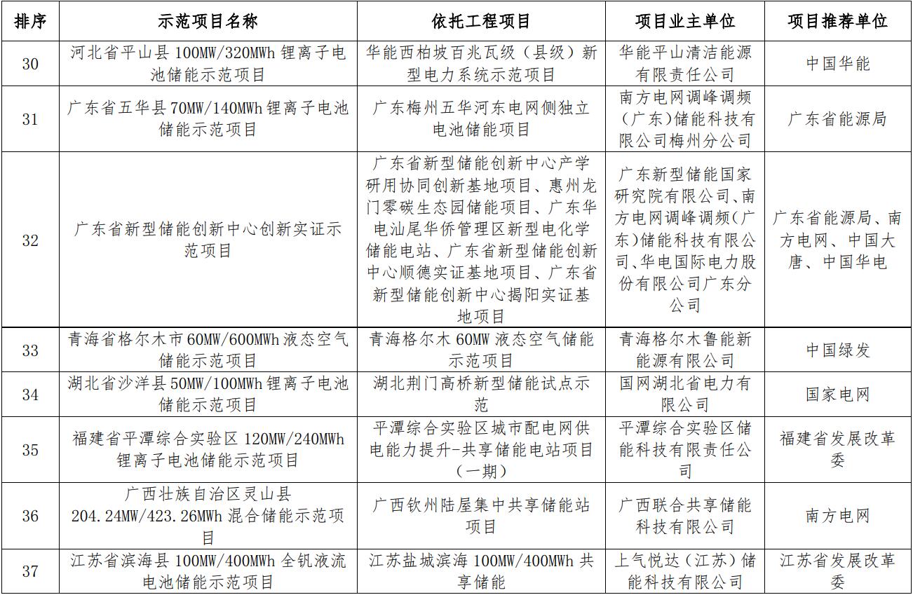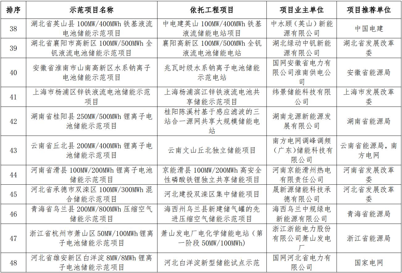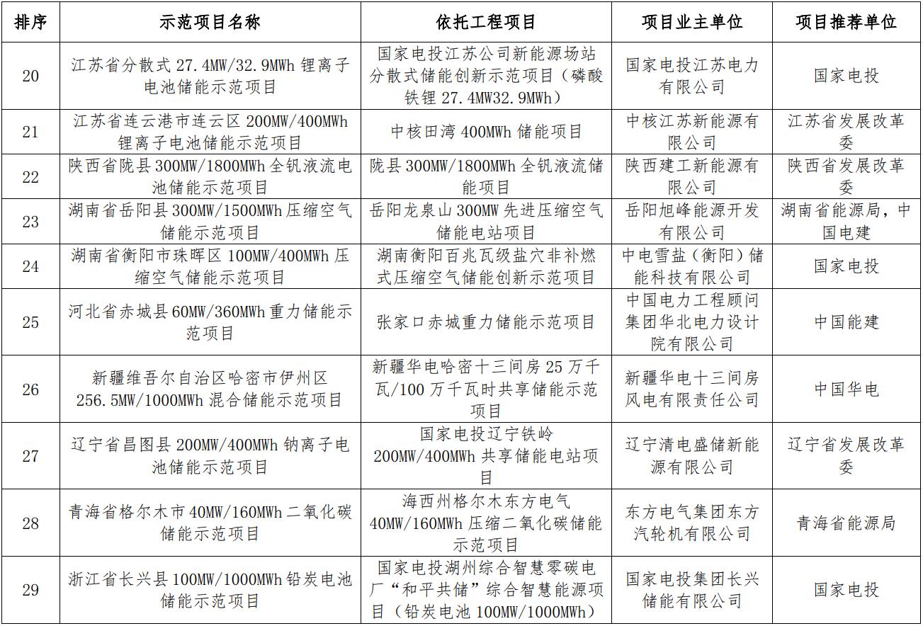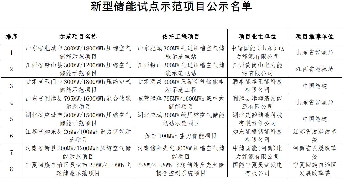 國家能源局綜合司關于公示新型儲能試點示范項目的通知