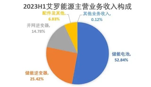 根據(jù)招股書披露,艾羅能源的主營業(yè)務結構如下圖所示,2023年1-6月公司各項產(chǎn)品中儲能逆變器收入占比25.42%;儲能電池收入占比52.84%,并網(wǎng)逆變器收入占比14.78%,配件及其他收入占比6.83%。