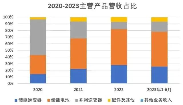 值得注意的是,2020年公司儲能業(yè)務占比尚未如此之高。2020年并網(wǎng)逆變器產(chǎn)品占總營收的53.85%,2021年公司明顯調(diào)整了產(chǎn)品側(cè)重,減少并網(wǎng)逆變器的份額,著重投入儲能電池和儲能逆變器領域,業(yè)務發(fā)展更聚焦。