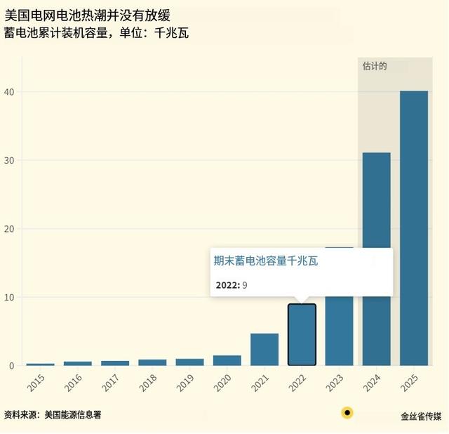 據(jù)美國(guó)能源信息署統(tǒng)計(jì),2023年末,美國(guó)電網(wǎng)安裝的電池儲(chǔ)能裝機(jī)總量,已達(dá)到驚人的17.3GW。這個(gè)數(shù)據(jù),比2022年底時(shí)的9GW增長(zhǎng)了近一倍!