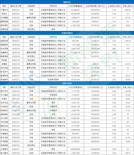 2024年儲能相關企業(yè)股份回購情況一覽