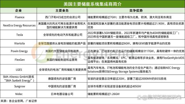 圖:美國(guó)市場(chǎng)主要儲(chǔ)能系統(tǒng)集成商簡(jiǎn)介