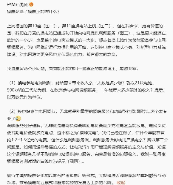 最后,沈斐表示:“期待中國的換電站也能以聚合的虛擬電廠等形式,大規(guī)模進入調(diào)峰調(diào)頻的車網(wǎng)融合互動領域,推動換電商業(yè)模式和蔚來能源的發(fā)展邁上新的臺階。”