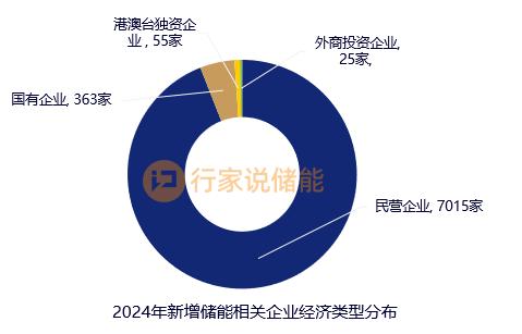 7570家新設(shè)儲能公司中,民營企業(yè)7015家,占92.67%,國有企業(yè)363家,港澳臺獨資企業(yè)55家,外商投資企業(yè)25家。