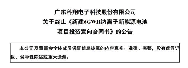 據(jù)科翔股份董秘辦的工作人員回應(yīng)稱,這是公司根據(jù)發(fā)展情況做出的決定,也表示公司還在繼續(xù)做鈉離子電池,后續(xù)應(yīng)該會披露進展。信豐縣的終止項目是意向協(xié)議,而與大亞灣簽訂的是正式協(xié)議。