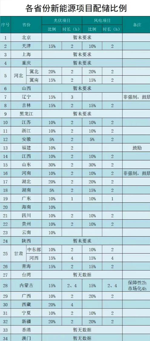 (截至2024年2月各省新能源配儲(chǔ)要求)