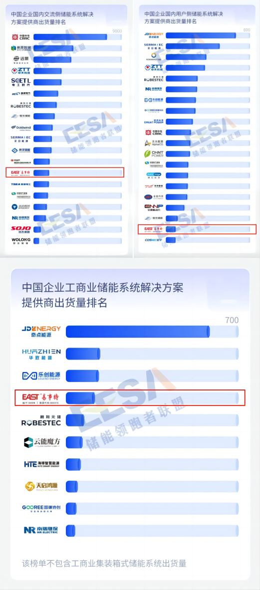 會上,儲能領(lǐng)跑者聯(lián)盟(EESA)還權(quán)威發(fā)布了“2023年度中國儲能企業(yè)全球出貨量排名”,易事特集團(tuán)榮登多項(xiàng)行業(yè)榜單,包括2023年中國企業(yè)國內(nèi)交流側(cè)儲能系統(tǒng)解決方案提供商出貨量TOP20、中國企業(yè)國內(nèi)用戶側(cè)儲能系統(tǒng)解決方案提供商出貨量TOP20、中國企業(yè)工商業(yè)儲能系統(tǒng)解決方案提供商出貨量TOP10。