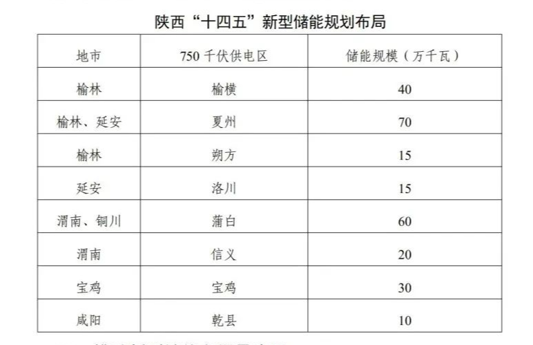 “十四五”期間規(guī)劃在榆林、延安、渭南、銅川、寶雞、咸陽的8個750千伏供電區(qū)布局2.6GW新型儲能。