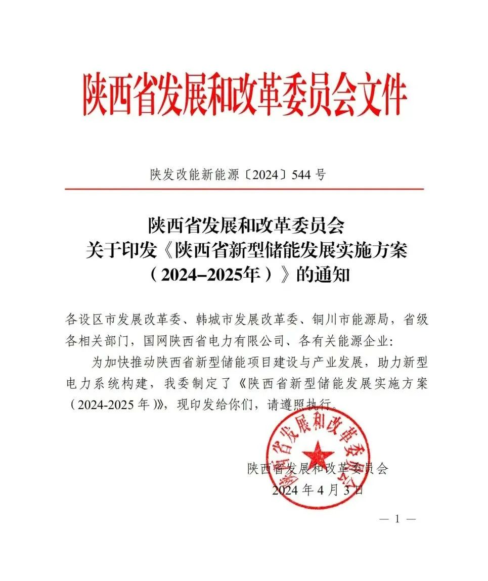 日前,陜西省發(fā)展和改革委員會印發(fā)《陜西省新型儲能發(fā)展實施方案(2024-2025年)》的通知。