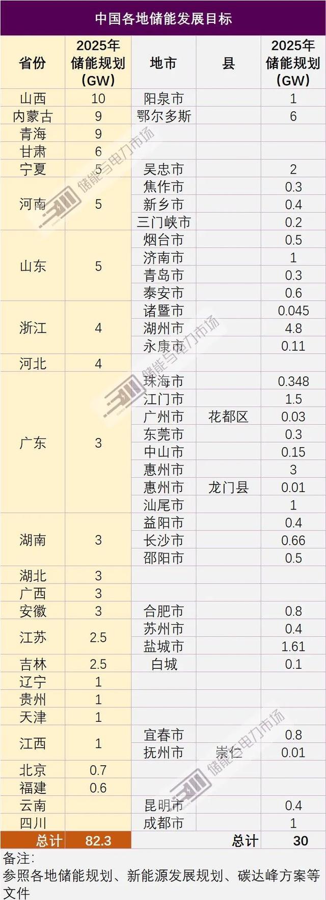 各地規(guī)劃儲能超80GW,山西、內蒙古、青海規(guī)劃規(guī)模最大