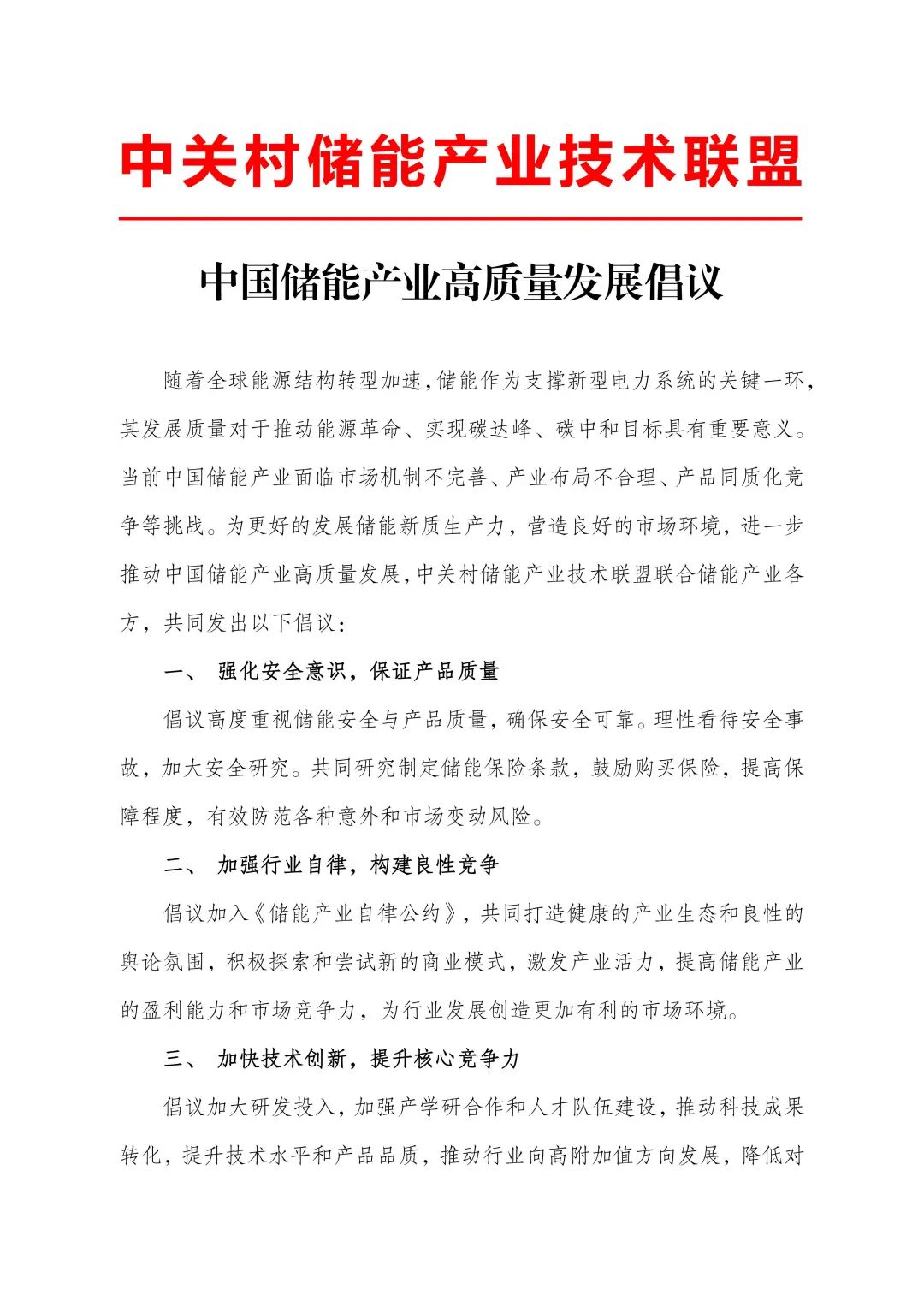 中國儲能產(chǎn)業(yè)高質(zhì)量發(fā)展倡議