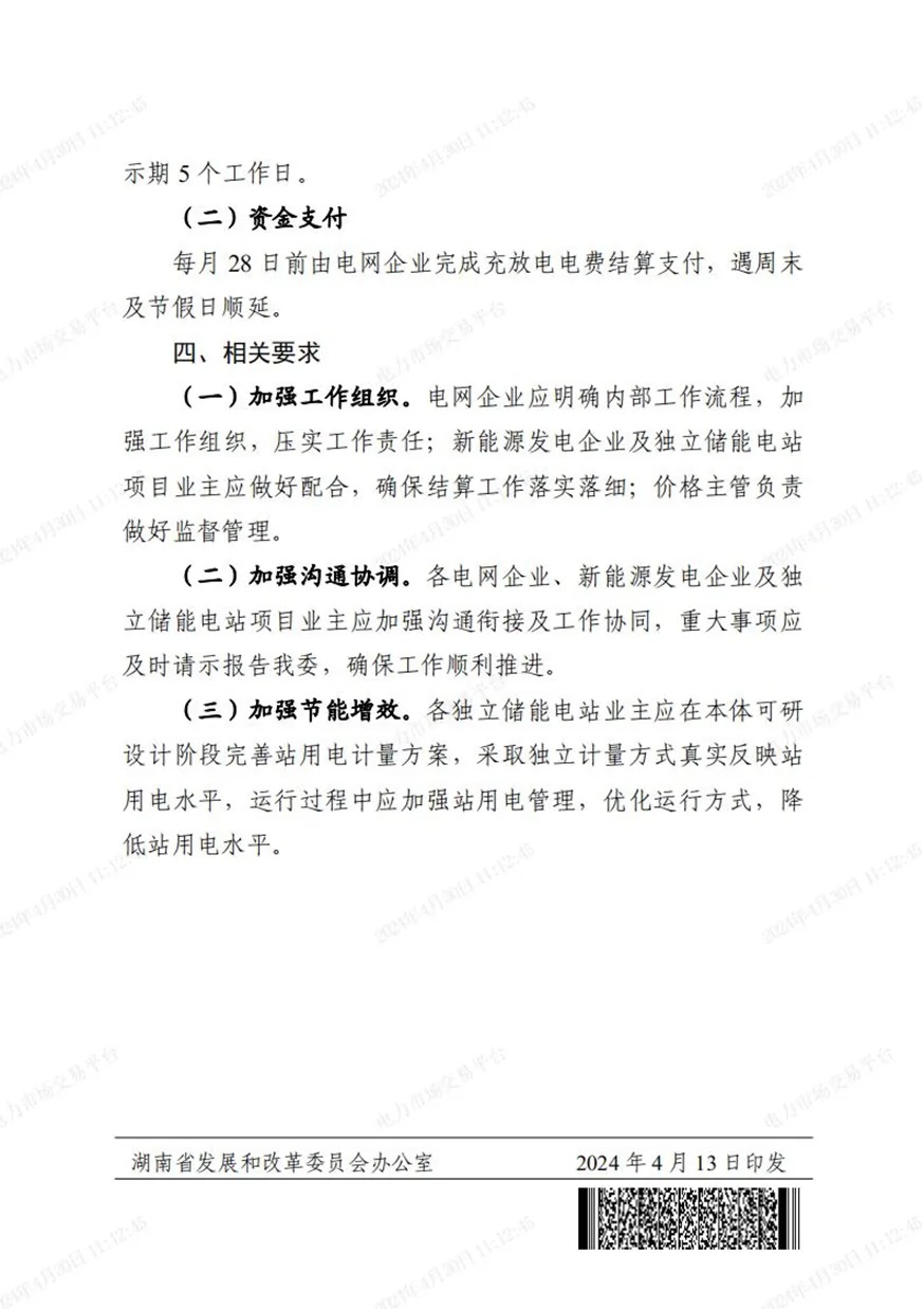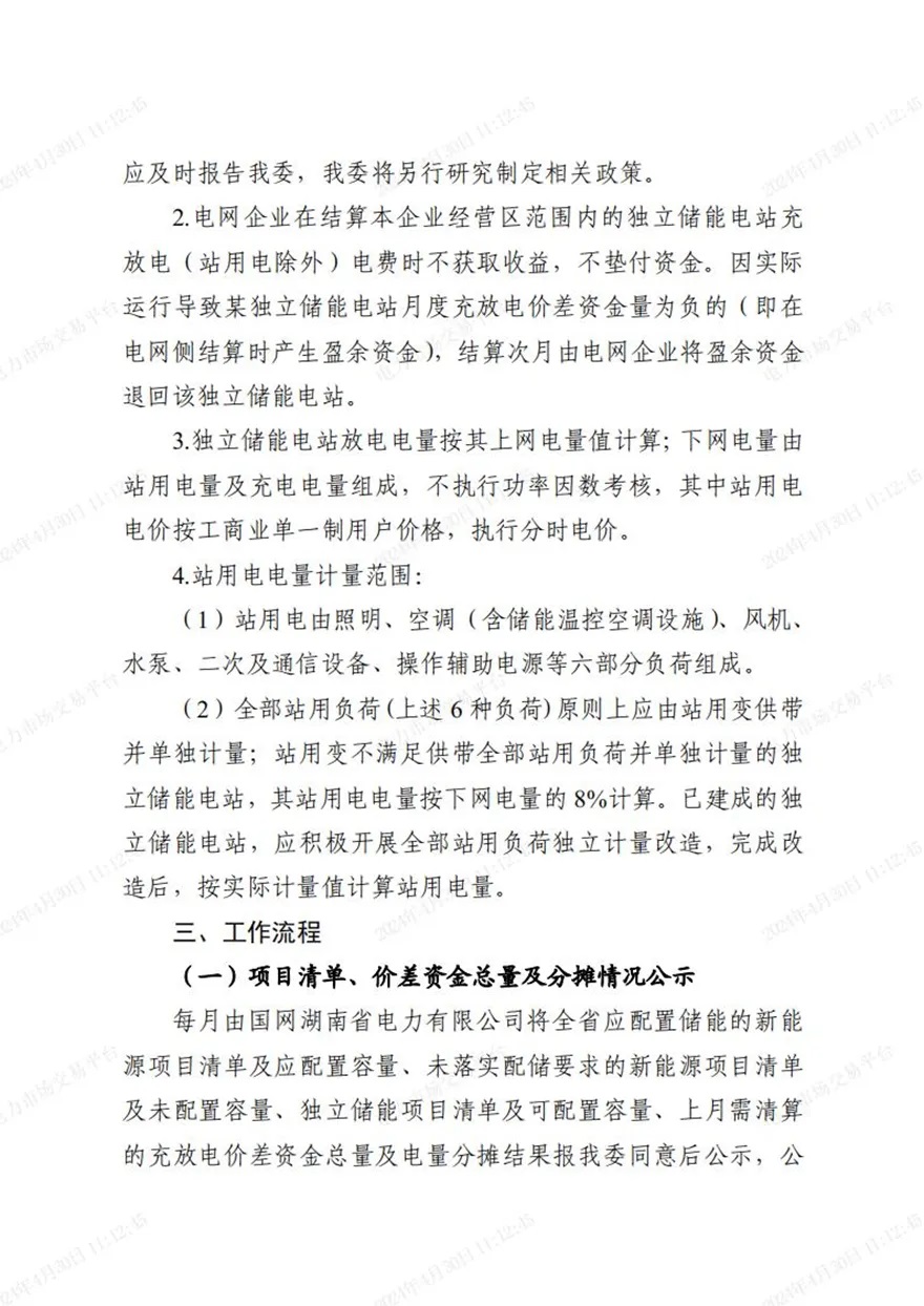 另外,方案還指出:每月由國網(wǎng)湖南省電力有限公司將全省應(yīng)配置儲能的新能源項(xiàng)目清單及應(yīng)配置容量、未落實(shí)配儲要求的新能源項(xiàng)目清單及未配置容量、獨(dú)立儲能項(xiàng)目清單及可配置容量、上月需清算的充放電價(jià)差資金總量及電量分?jǐn)偨Y(jié)果報(bào)我發(fā)改委同意后公示,公示期5個(gè)工作日。