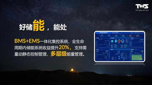 新品BMS+EMS采用一體化集控系統(tǒng),使得全生命周期內(nèi)儲(chǔ)能系統(tǒng)收益提升20%;并且支持需量動(dòng)靜態(tài)控制管理,做到多層級(jí)能量管理;結(jié)合智能優(yōu)化算法和云平臺(tái)遠(yuǎn)程監(jiān)控,AI模型自學(xué)習(xí)優(yōu)化、實(shí)時(shí)診斷健康狀態(tài)、出具數(shù)據(jù)報(bào)告分析,以精準(zhǔn)科學(xué)的“能源管理方案”助力工商業(yè)儲(chǔ)能高效設(shè)計(jì)運(yùn)營(yíng)。