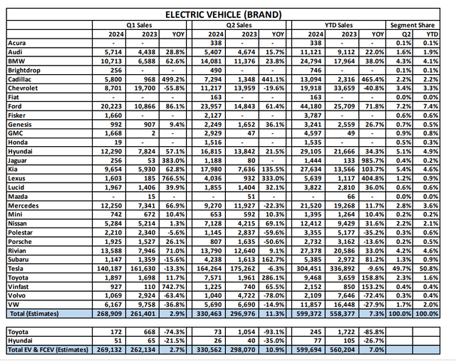 然而,由于競(jìng)爭(zhēng)的影響,特斯拉第二季度的美國(guó)電動(dòng)汽車市場(chǎng)份額首次跌破50%的門檻,降至49.7%。盡管特斯拉銷量下滑,但縱觀第二季度全美純電市場(chǎng),整體同比增長(zhǎng)了11.3%,雖然與上年同期相比,增速放緩,但上升趨勢(shì)也說(shuō)明美國(guó)消費(fèi)市場(chǎng)對(duì)電動(dòng)汽車仍有一定的需求。