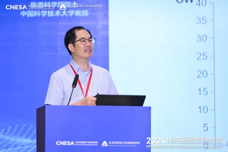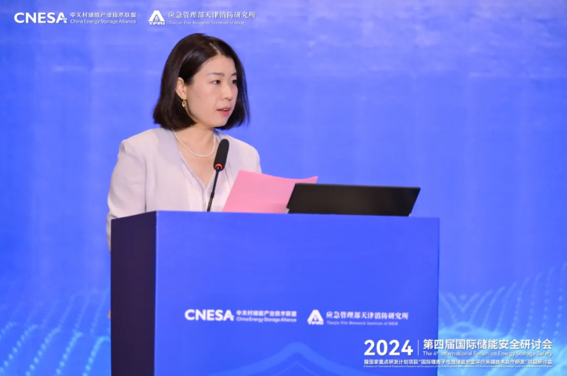 世界銀行能源顧問(wèn)Aakarshan Vaid介紹了美國(guó)、英國(guó)、澳大利亞等發(fā)生的儲(chǔ)能火災(zāi)典型事故、儲(chǔ)能不同階段的現(xiàn)狀等。應(yīng)急管理部天津消防研究所科技處處長(zhǎng)李晉重點(diǎn)介紹了鋰離子電池儲(chǔ)能安全評(píng)價(jià)技術(shù)研究進(jìn)展。