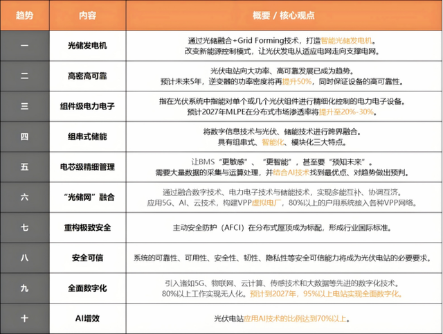早在2022年,華為就公開展望了智能光伏發(fā)展十大趨勢。預(yù)測到2027年,95%以上的光伏電站實(shí)現(xiàn)全面數(shù)字化,應(yīng)用AI技術(shù)的比例將達(dá)到70%以上。