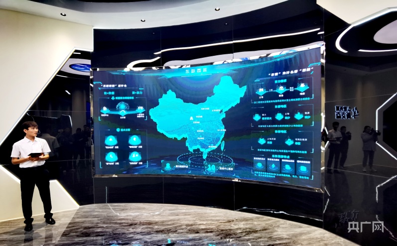 工作人員介紹大數(shù)據(jù)中心的基本情況(央廣網(wǎng)記者 張海東 攝)
