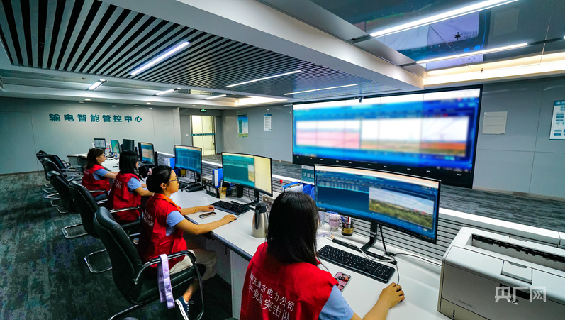 國網(wǎng)天津高壓公司工作人員在輸電管控中心內(nèi)開展保電監(jiān)測(央廣網(wǎng)記者 褚夫晴 攝)