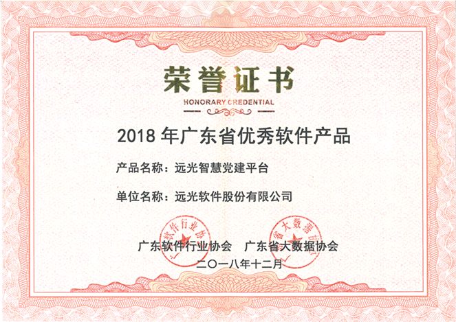 日前,廣東省軟件行業(yè)協(xié)會發(fā)布“2018年度優(yōu)秀軟件產(chǎn)品”名單,遠光軟件股份有限公司自主研發(fā)的“智慧黨建平臺”憑借創(chuàng)新的管理理念,對黨建工作的精細化管理和創(chuàng)新運用互聯(lián)網(wǎng)技術(shù)于黨建,獲得了行業(yè)和用戶的高度認可,被授予 “2018年度優(yōu)秀軟件產(chǎn)品”稱號。
