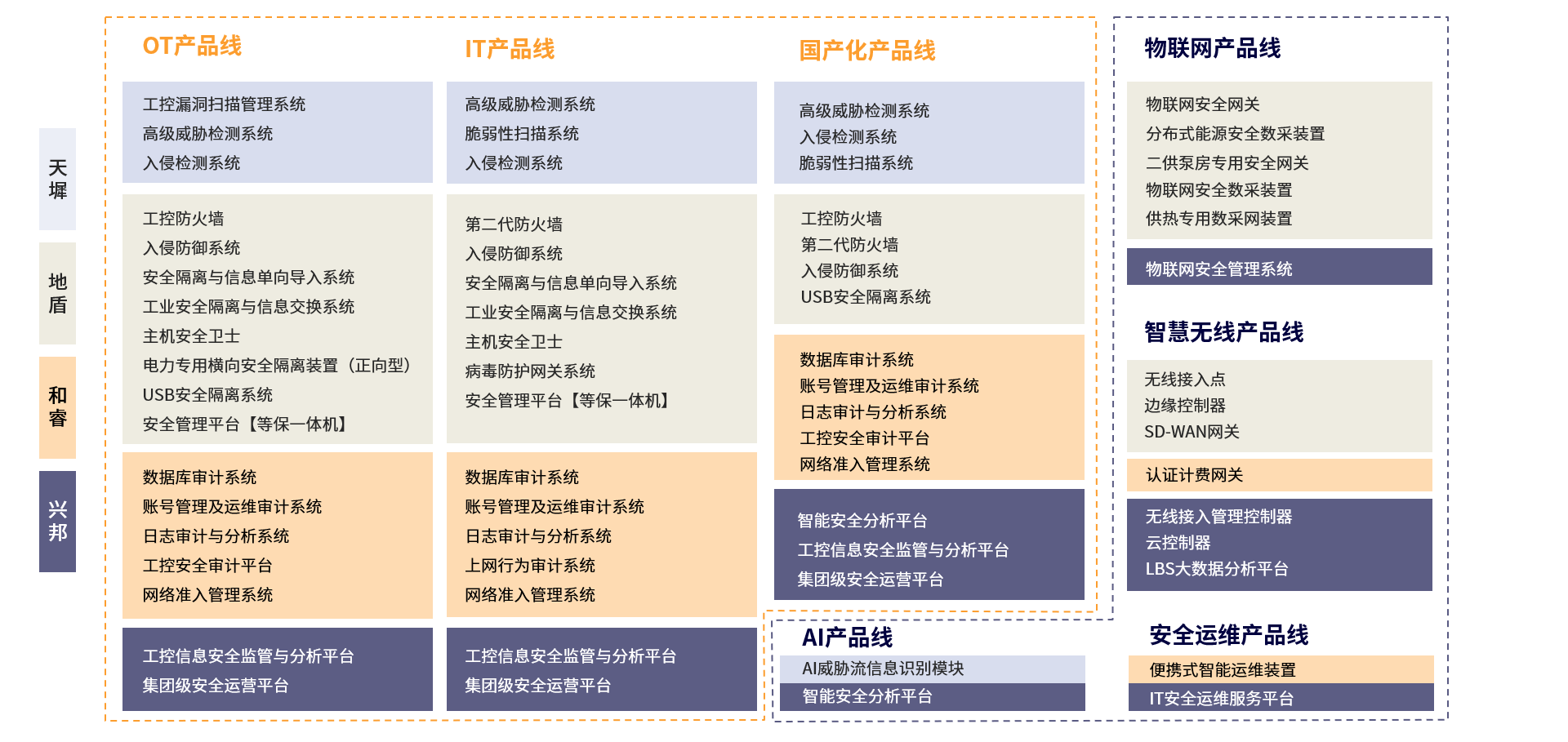 天地和興結(jié)合新場景、新威脅,以技術(shù)創(chuàng)新驅(qū)動產(chǎn)品創(chuàng)新,立足市場發(fā)展,在業(yè)內(nèi)率先提出工業(yè)全域安全產(chǎn)品概念,以物聯(lián)、智能、運維為新三重防護重點,以檢測、評估、防護、協(xié)同、審計、平臺為產(chǎn)品重點,形成一套更為完善的工業(yè)網(wǎng)絡(luò)安全產(chǎn)品體系。此次活動中,產(chǎn)品負責人李佐民進一步發(fā)布了天地和興全新的產(chǎn)品矩陣,并重磅推出三款新品:智能安全分析平臺、物聯(lián)網(wǎng)安全網(wǎng)關(guān)及管理系統(tǒng)、IT安全運維服務平臺。