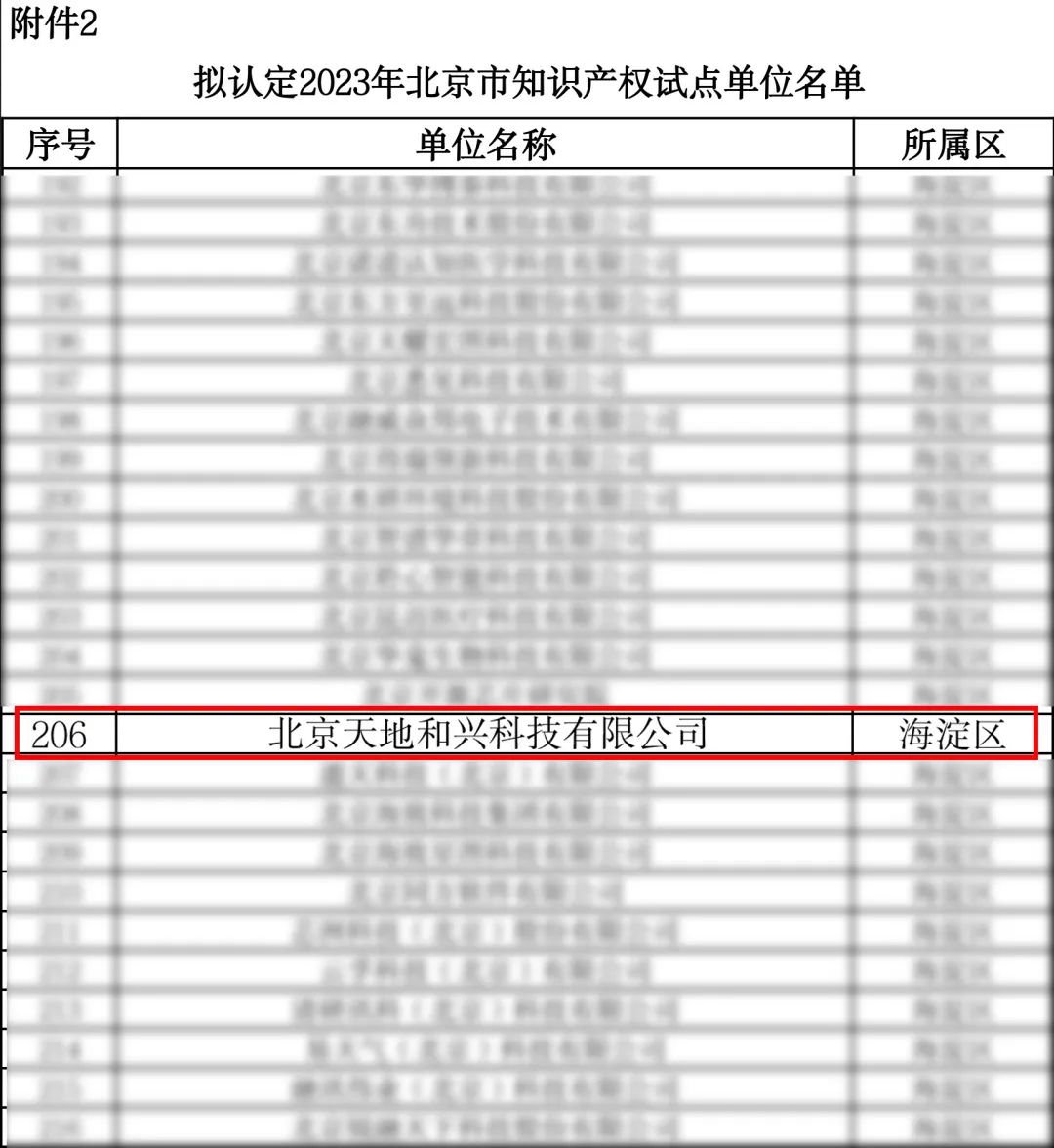 天地和興被評(píng)為2023年北京市知識(shí)產(chǎn)權(quán)試點(diǎn)單位