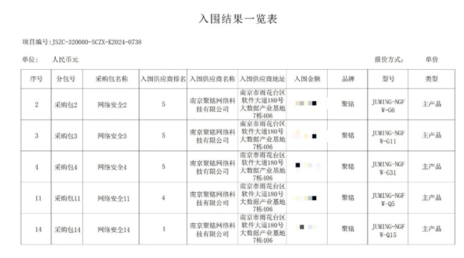 聚銘網(wǎng)絡(luò)成功入圍2025年度江蘇省政府采購信息安全設(shè)備協(xié)議供貨名單